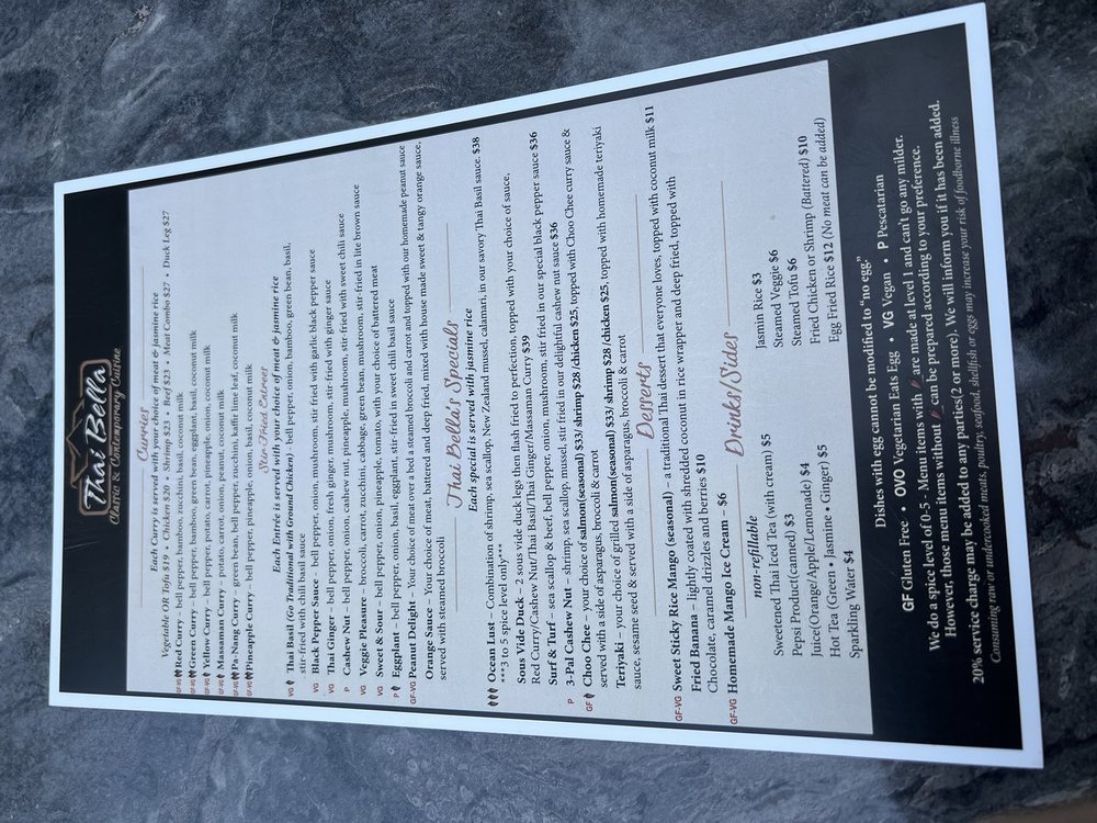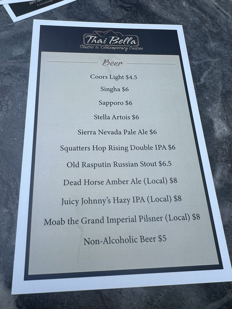 Thai Bella is a popular Asian fusion and vegetarian restaurant in Moab, UT, known for its delicious Thai cuisine and friendly service. Customers rave about the flavorful dishes, such as the pad Thai with shrimp and the pad see ew, which is prepared quickly and with generous portion sizes. The spice levels are customizable, with options ranging from mild to extra spicy, catering to all taste preferences. The restaurant offers various payment options, including cash, credit cards, and even cryptocurrency, making it convenient for all customers. With outdoor seating, attentive wait staff, and a cozy dining atmosphere, Thai Bella is the perfect stop for a satisfying meal after a day of exploring Arches or the surrounding area. Give your taste buds a treat and experience the unique flavors of Thai Bella today!